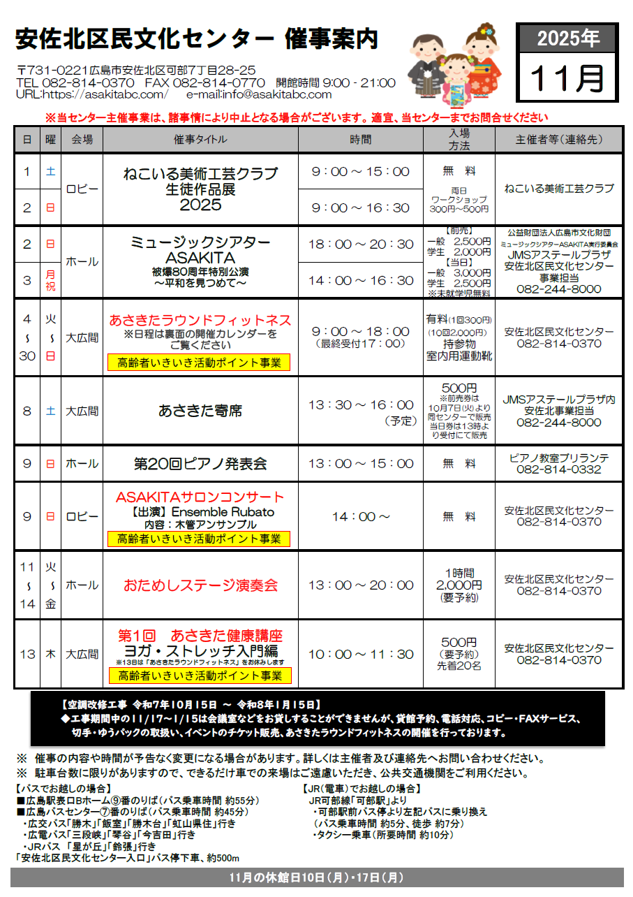 広島市安佐北区での催し物や地域イベントなど盛りだくさんです。どなたでもお気軽にご利用ください。